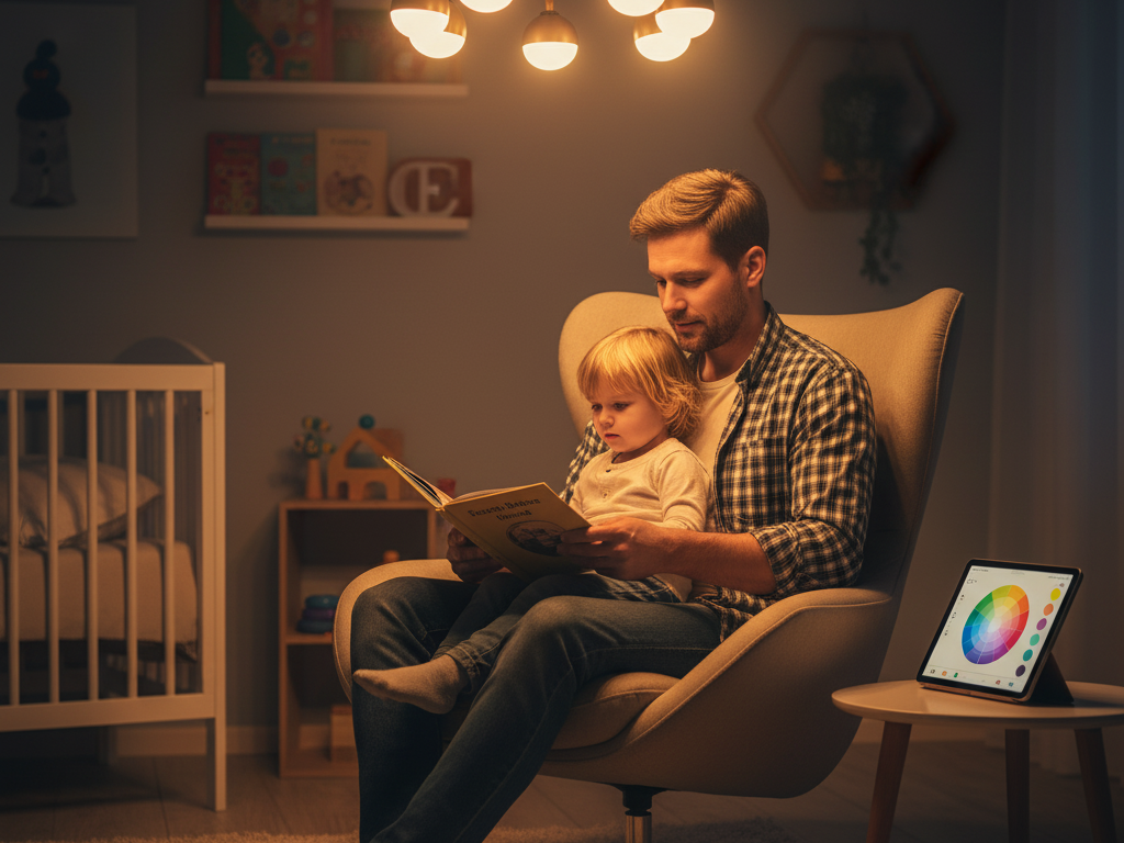 Kto z Was słyszał o rytmie dobowym i wpływie światła na sen dziecka? Przyznam, że od razu wkręciłam się w „życie dostosowane do światła” i korzystaliśmy ze ściemnianych żarówek i lamp jeszcze przed dziećmi – ich pojawienie się tylko zwiększyło zastosowanie. Mają nie tylko możliwość włączania i wyłączania światła przez telefon (choć to też brzmi przydatnie, gdy leżysz przy zasypiającym dziecku i nie chcesz szukać kontaktu w ciemnościach). Przydaje się kontrola nad temperaturą barwową światła i jego jasnością. Dlaczego to ważne? Jasne, białe światło pobudza organizm i utrudnia zasypianie. Ciepłe, żółtawe światło działa uspokajająco i przygotowuje do snu.