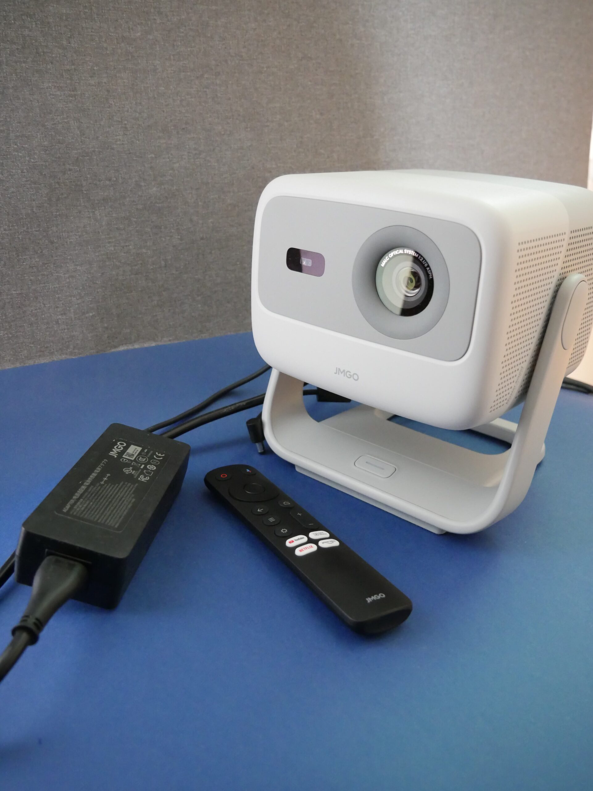 Zdaję sobie sprawę, że to jest zupełnie inny typ projektora, ale JMGO PicoFlix, którego recenzję możecie znaleźć na naszej stronie można zasilać przy pomocy kabla USB z powerbankiem. Daje to pewien luz w doborze umiejscowienia projektora. W JMGO N1S SE jest zasilacz z konkretną końcówką, nie ma takiej swobody, jest się ograniczonym dostępem do gniazdka ( i długością kabla zasilającego, ewentualnie można sobie kupić dłuższy).