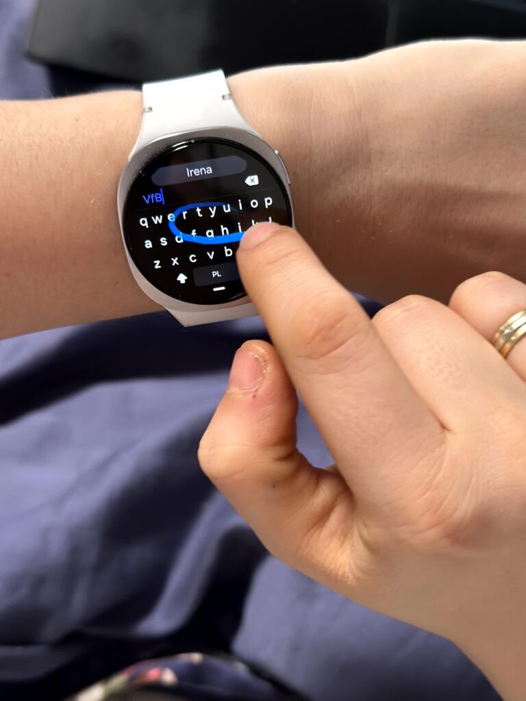 Samsung Wallet lub Googe Wallet pozwalają na płatności zbliżeniowe. Oczywiście nie ma obaw o płatności, gdy zdejmiemy zegarek z ręki – jest on wtedy zabezpieczony kodem PIN. Dzięki WearOS mamy też wiele większe możliwości odpowiedzi. Zamiast wpisanych na sztywno odpowiedzi typu „Tak/Nie”. Spokojnie możemy pisać na WhatsAppie czy Messengerze. Jak? Albo stukając w literki na małej klawiaturze, rysując literki na tarczy (moje pismo powodowało wiele pomyłek), albo dyktując wiadomość. Widać też zdjęcia, które ktoś mi przysłał, a nie tylko komunikat „użytkownik wysłał zdjęcie”.